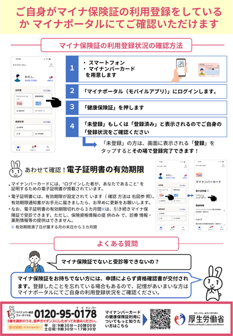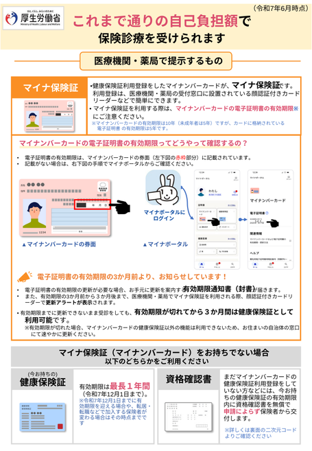 健康保険証の有効期限が切れたあとは、マイナ保険証もしくは資格確認書で受付をお願いいたします。